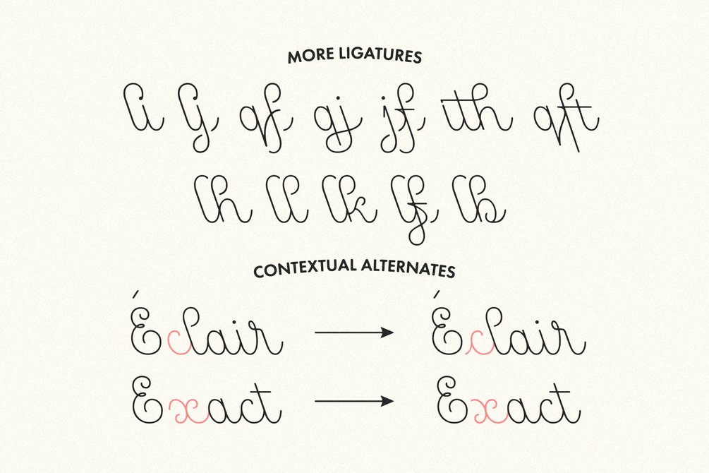 It features a diverse range of stylistic alternates, contextual alternates, and standard ligatures, ensuring that you’ve countless options to choose from for your design work. This font family is delicately crafted and well thought out with every little detail in mind, to ensure its ease and versatility when used!